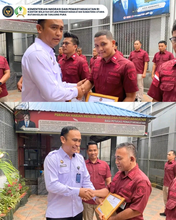 Apresiasi Kinerja Petugas Karutan Tanjung Pura Berikan Piagam Penghargaan Kepada 06 Orang Petugas