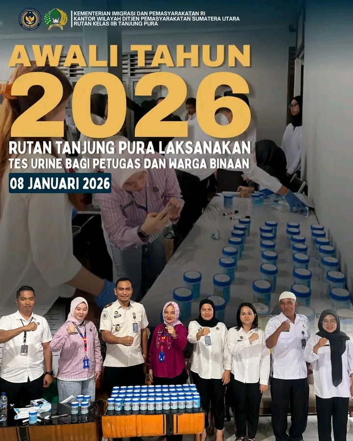 Melalui tes urine ini, Rutan Tanjung Pura terus berkomitmen dalam menciptakan lingkungan pemasyarakatan yang aman, tertib, dan bersih dari Narkoba.