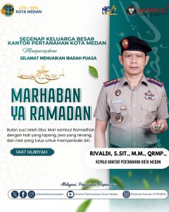 Medan, HARIANMEDIARAKYAT - Kantor Pertanahan Kota Medan menyampaikan ucapan Selamat Menunaikan Ibadah Puasa Ramadan 1447 Hijriah kepada seluruh masyarakat Muslim,...