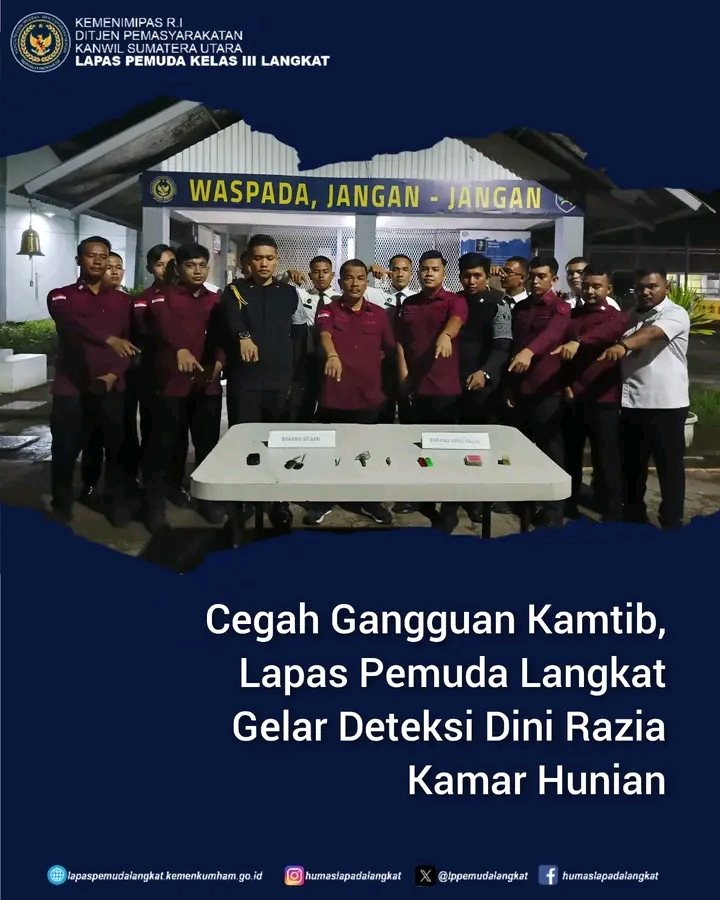 Dalam rangka peningkatan keamanan dan ketertiban serta memastikan tidak adanya barang terlarang, Lapas Pemuda Langkat Lakukan Deteksi Dini Razia, Kamis (16/10/2025).