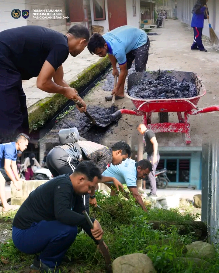 Dalam rangka menyemarakkan peringatan Hari Bhakti Pemasyarakatan (HBP) ke-62, Rumah Tahanan Negara (Rutan) Kelas IIB Pangkalan Brandan menggelar kegiatan gotong royong membersihkan lingkungan sekitar rutan pada Jumat (14/03/2026).