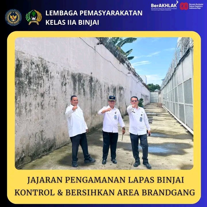 Ka. KPLP Lapas Binjai, Pariaman Saragih, bersama Kasi Adm & Kamtib, Serikat Sembiring, Kasubsi Keamanan, Samuel Silalahi, Kasubsi Paporan, Abdurrahman Sirait, didampingi jajaran Pengamanan Lapas Kelas IIA Binjai melakukan kegiatan langkah percepatan deteksi dini. Dengan melakukan Kontrol dan Pengecekan Kondisi Fisik Brandgang Lapas Kelas IIA Binjai. Selasa, (23/09/2025).
