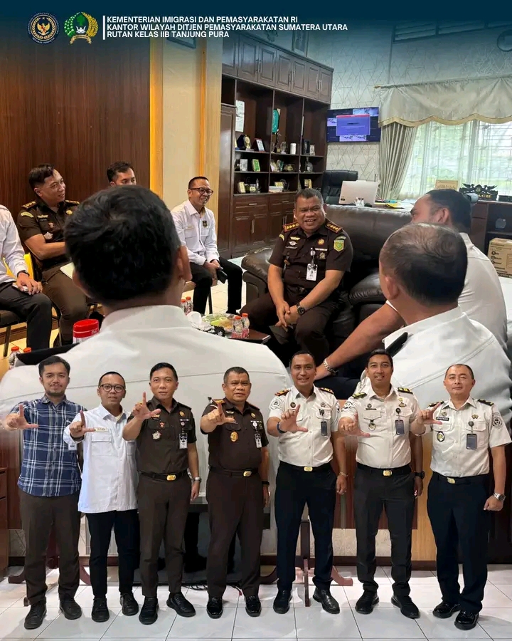 Tanjung Pura, HARIANMEDIARAKYAT – Dalam rangka memperkuat koordinasi dan sinergitas antar Aparat Penegak Hukum (APH), Rumah Tahanan Negara Kelas II B Tanjung Pura di bawah kepemimpinan Karutan Tanjung Pura, Fransisco Pandia melaksanakan kunjungan kerja ke Kejaksaan Negeri Stabat, Pengadilan Negeri Stabat, dan Polres Stabat.