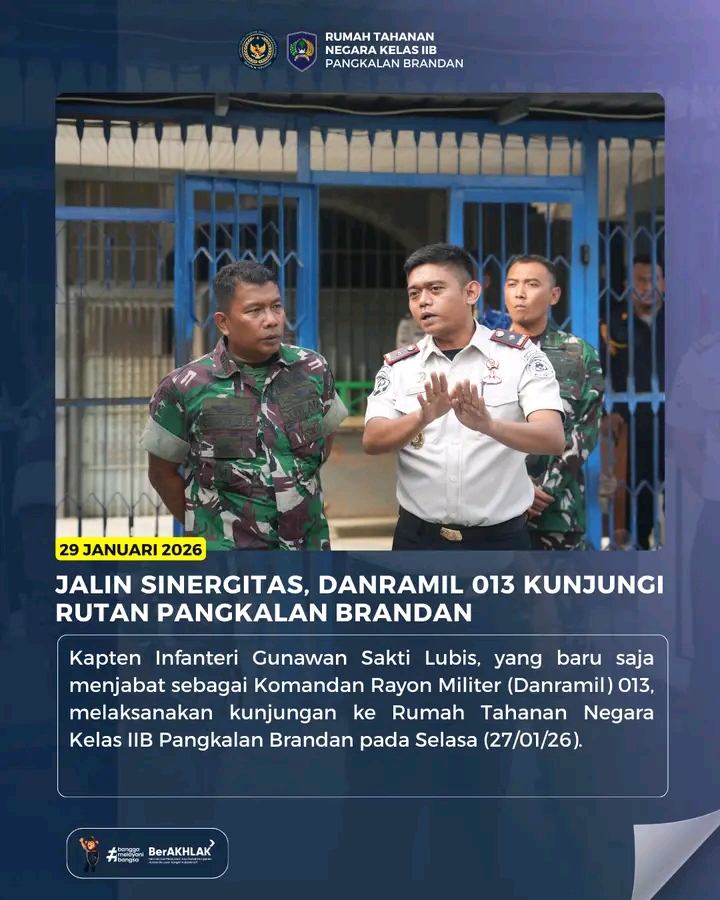 Kapten Infanteri Gunawan Sakti Lubis, yang baru saja menjabat sebagai Komandan Rayon Militer (Danramil) 013 , melaksanakan kunjungan ke Rumah Tahanan Negara Kelas IIB Pangkalan Brandan pada Selasa (27/01/2025).