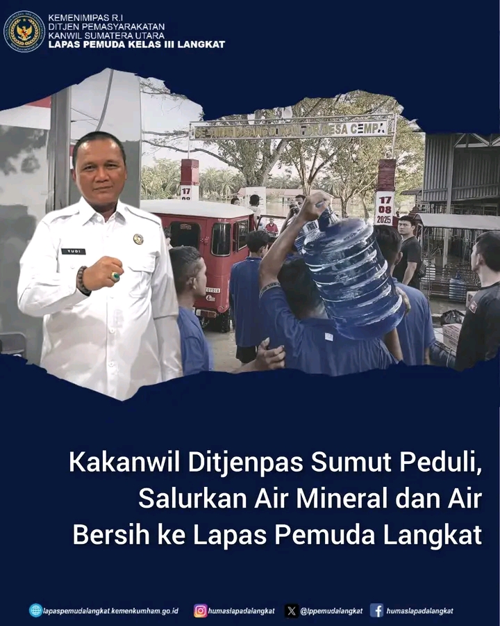 Di tengah duka akibat banjir yang melanda sebagian wilayah Langkat, secercah harapan hadir berkat kepedulian Kakanwil Ditjenpas Sumut, Yudi Suseno. Beliau menyalurkan bantuan kepada warga binaan Lapas Pemuda Langkat yang terdampak banjir, Minggu (30/11/2025).
