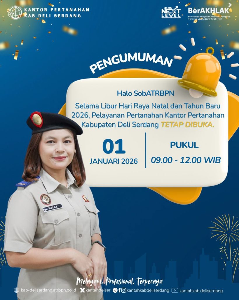 Kantor Pertanahan Deli Serdang Buka Pelayanan Terbatas Selama Libur Natal 2025 dan Tahun Baru 2026