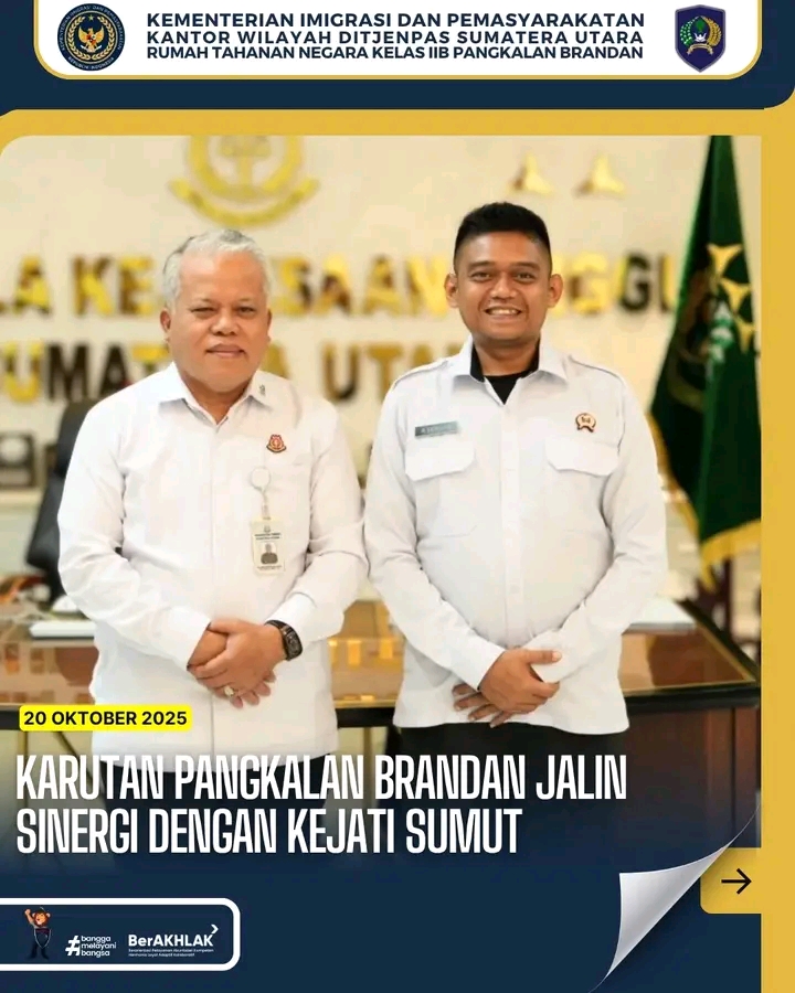 Kepala Rumah Tahanan Negara Kelas IIB Pangkalan Brandan, Akmalun Ikhsan, bersama Kepala Lapas Narkotika Kelas IIA Langkat, Tapianus Antonio Barus, dan Kepala Rutan Tanjung Pura, Fransisco Pandia, melakukan kunjungan silaturahmi ke Kantor Kejaksaan Tinggi Sumatera Utara di Medan.