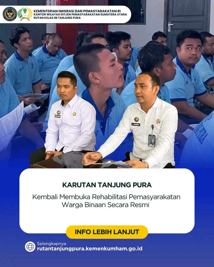 Rutan Tanjung Pura terus berkomitmen dalam memberikan pembinaan yang berkelanjutan dan berorientasi pada pemulihan dengan tujuan memberikan dukungan kepada warga binaan agar pulih dan bebas dari ketergantungan narkotika.