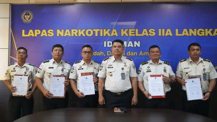 Lembaga Pemasyakatan (Lapas) Narkotika Kelas IIA Langkat melaksanakan Perjanjian Kinerja Tahun 2026 bersama Kepala Kantor Wilayah Direktorat Jenderal Pemasyarakatan (Kanwil Ditjenpas) Sumatera Utara dan para Kepala Unit Pelaksana Teknis (UPT) Pemasyarakatan Kanwil Ditjenpas Sumut secara virtual, Selasa (06/01/2026). Kegiatan ini diikuti oleh Kepala Lapas (Kalapas) Narkotika Langkat beserta seluruh Pejabat Struktural yang melaksanakan penandatangan bertempat di Ruang Sekretariat Lapas.