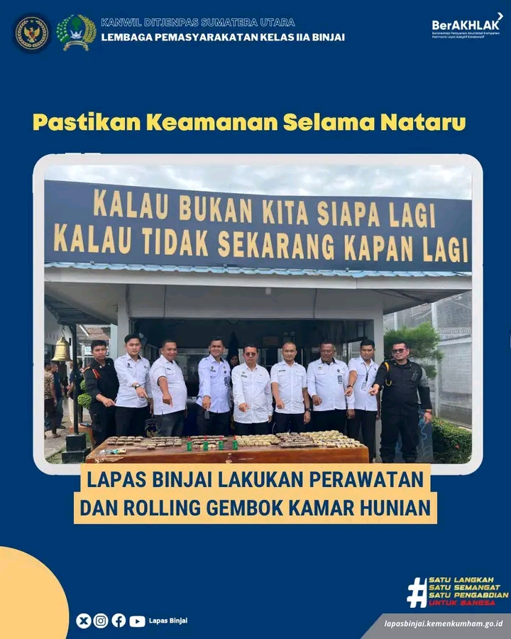 Kepala Lapas Binjai, Wawan Irawan, melalui Ka. KPLP, Rudi Sembiring, mengatakan bahwa kegiatan perawatan dan rolling gembok merupakan salah satu agenda rutin wajib mengenai optimalisasi pengamanan.