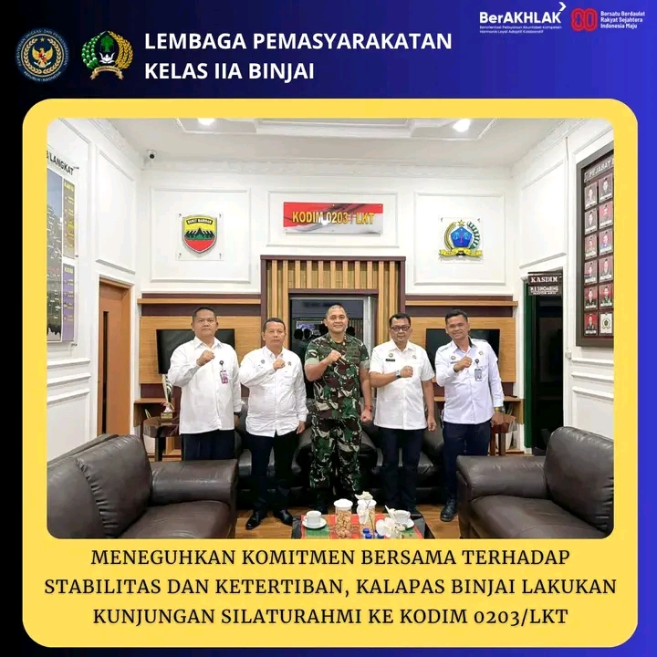 Kepala Lembaga Pemasyarakatan Kelas IIA Binjai, Wawan Irawan, bersama jajaran pejabat struktural melakukan kunjungan silaturahmi ke Komando Distrik Militer (Kodim) 0203/Langkat, Rabu (29/10/2025).