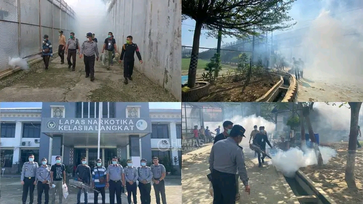 Dalam rangka menjaga kesehatan dan kewaspadaan terhadap bahaya yang ditimbulkan oleh nyamuk, Lembaga Pemasyarakatan (Lapas) Narkotika Kelas IIA Langkat melakukan kegiatan fogging pada seluruh lingkungan Lapas, Selasa (23/12).