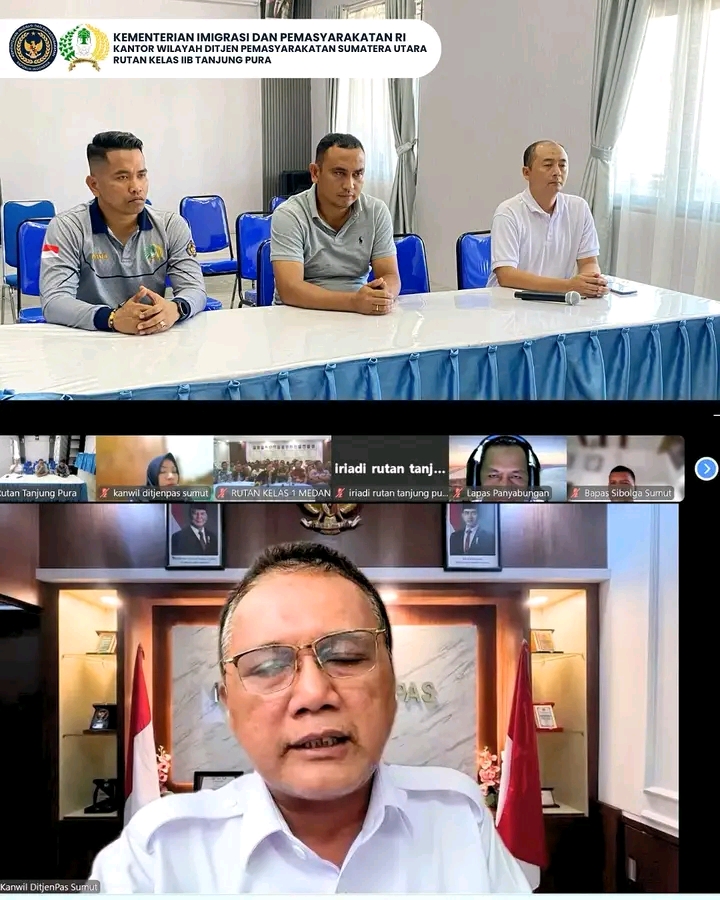 Kegiatan ini diikuti oleh Karutan Tanjung Pura, Fransisco Pandia beserta pejabat struktural yakni Ka. KPR, Efriyanto dan Kasubsi Pengelolaan, Zulfikar di Aula Rutan Tanjung Pura. Kegiatan ini dihadiri secara virtual oleh seluruh Ka. UPT se-Sumatera Utara dan menerima arahan dari kakanwil.