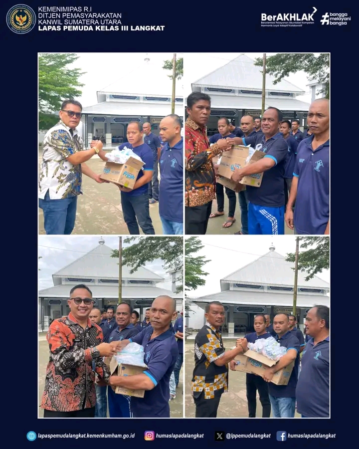 Dalam upaya memenuhi hak dasar warga binaan Lembaga Pemasyarakatan (Lapas) Pemuda Kelas III Langkat membagikan perlengkapan mandi kepada seluruh warga binaan. Kegiatan ini merupakan salah satu bentuk komitmen Lapas Pemuda Langkat dalam memastikan kebutuhan dan kenyamanan warga binaan selama menjalani masa pembinaan di dalam Lapas, Jumat (24/10/2025).