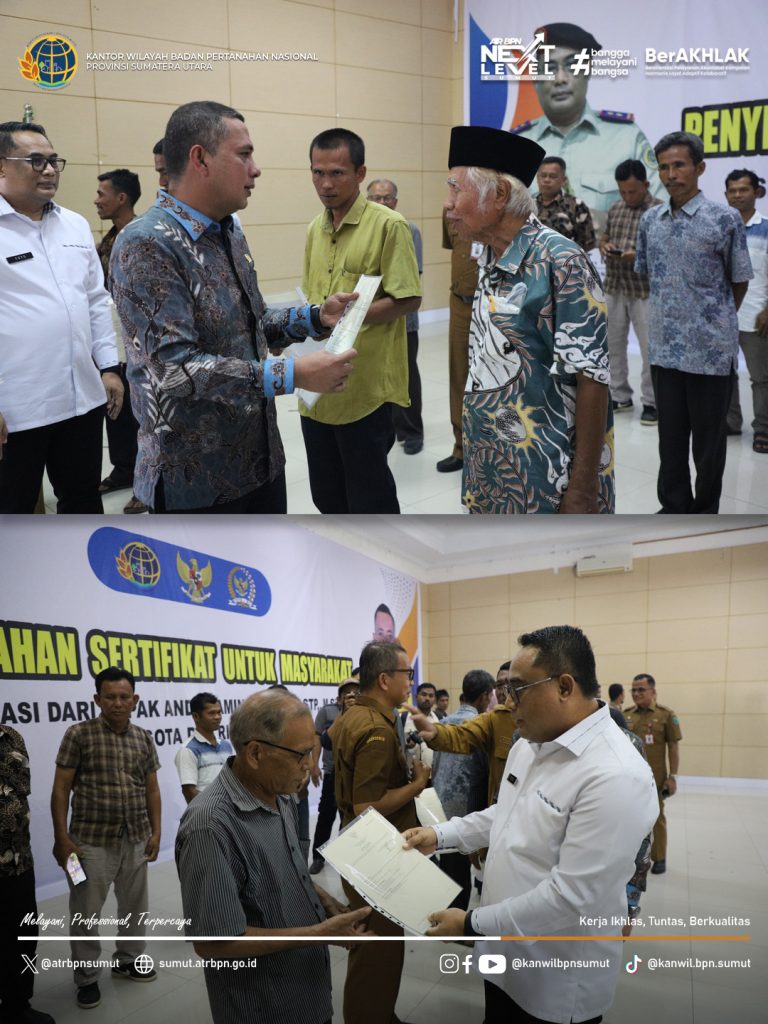 Dalam sambutannya, Kakanwil BPN Sumut, Sri Pranoto, menyampaikan apresiasi dan terima kasih kepada masyarakat yang terus mendukung program pemerintah di bidang pertanahan. Ia menegaskan bahwa Kementerian Agraria dan Tata Ruang/Badan Pertanahan Nasional (ATR/BPN) akan terus meningkatkan kualitas pelayanan publik agar manfaatnya semakin dirasakan masyarakat.