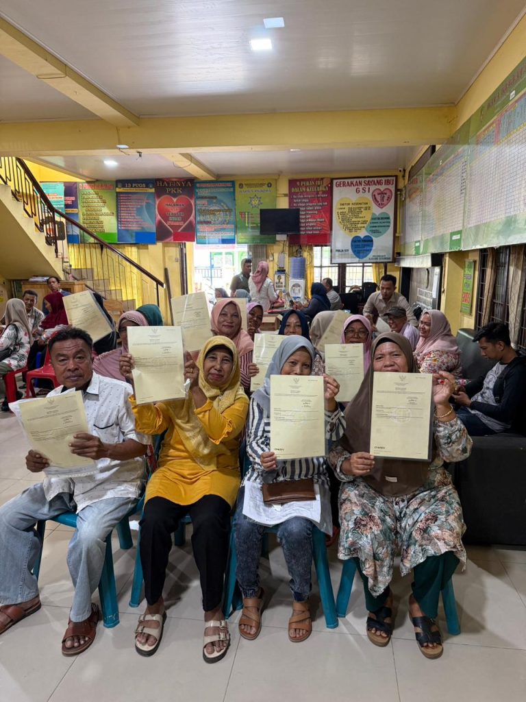 Medan, HARIANMEDIARAKYAT – Penyerahan Sertipikat Pendaftaran Tanah Sistematis Lengkap (PTSL) Tahun 2025 kembali dilaksanakan di Kantor Kelurahan Karang Berombak sebagai wujud komitmen pemerintah dalam memberikan kepastian hukum atas tanah kepada masyarakat. Kegiatan tersebut dihadiri oleh masyarakat penerima sertipikat, perangkat kelurahan, serta perwakilan dari Kantor Pertanahan Kota Medan.