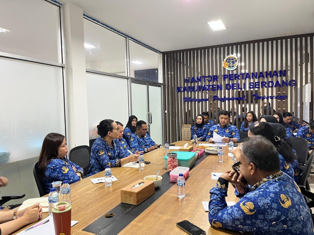 Rapat tersebut dipimpin langsung oleh Kepala Kantor Pertanahan Kabupaten Deli Serdang, Mahyu Danil, S.S.T., M.H., dan diikuti oleh para pejabat pengawas serta jajaran pegawai. Dalam kesempatan itu, Mahyu Danil menekankan pentingnya konsistensi kinerja serta peningkatan kualitas layanan kepada masyarakat.