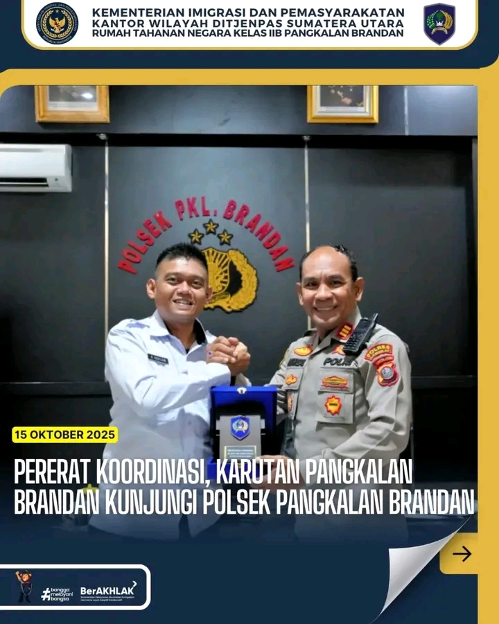 Kepala Rumah Tahanan Negara Kelas IIB Pangkalan Brandan, Akmalun Ikhsan, bersama jajaran melakukan kunjungan silaturahmi ke Polsek Pangkalan Brandan.