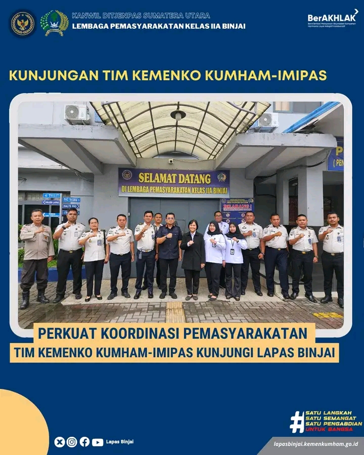 Dalam rangka memperkuat koordinasi dan sinergitas di bidang pemasyarakatan, tim dari Kemenko Kumham–Imipas melakukan kunjungan kerja ke Lapas Kelas IIA Binjai.