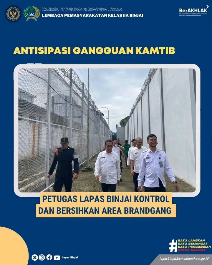 Kasi Adm & Kamtib, Serikat Sembiring, Ka. KPLP, Rudi Sembiring bersama Kasubsi Paporan, Abdurrahman Sirait, didampingi jajaran Pengamanan Lapas Kelas IIA Binjai melakukan kegiatan langkah percepatan deteksi dini. Dengan melakukan Kontrol dan Pengecekan Kondisi Fisik Brandgang Lapas Kelas IIA Binjai. Rabu, (04/12/2025).