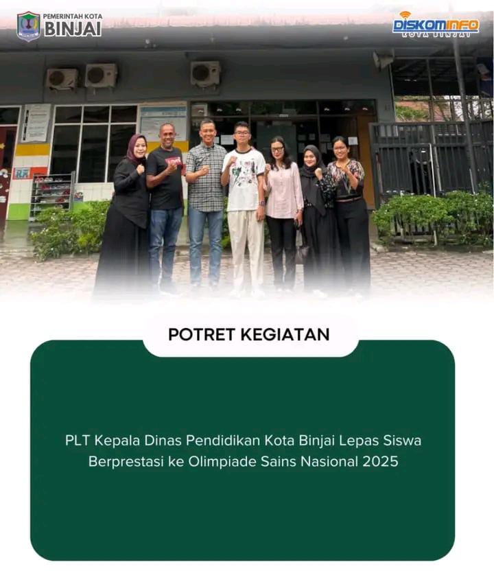PLT Kepala Dinas Pendidikan Kota Binjai, Sofyan Syahputra Siregar, S.STP, M.A, bertemu dengan Matthew Pranawinata Tarigan, siswa SMP Swasta Permata Bangsa yang berhasil lolos ke Olimpiade Sains Nasional (OSN) Tingkat Nasional 2025 bidang Ilmu Pengetahuan Alam (IPA). Matthew akan mewakili Provinsi Sumatera Utara setelah meraih nilai tertinggi pada OSN Tingkat Provinsi yang diselenggarakan Pusat Prestasi Nasional (Puspresnas).