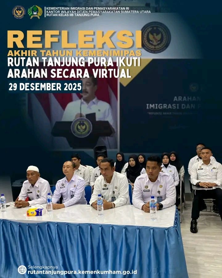 Rumah Tahanan Negara Kelas IIB Tanjung Pura Kantor Wilayah Direktorat Jenderal Pemasyarakatan Sumatera Utara ikuti Refleksi Akhir Tahun 2025 yang digelar secara virtual. Senin (29/12)