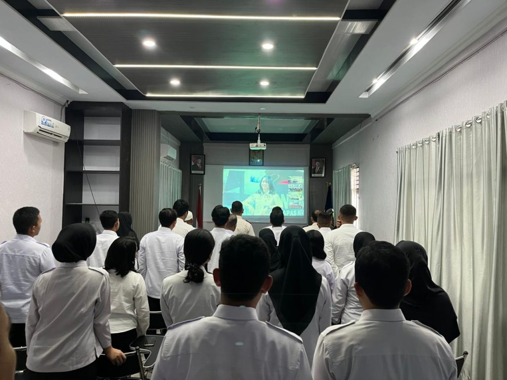 Tanjung Pura, HARIANMEDIARAKYAT – Rumah Tahanan Negara (Rutan) Kelas IIB Tanjung Pura, Kantor Wilayah Direktorat Jenderal Pemasyarakatan, mengikuti apel bersama pegawai awal tahun 2026 yang diselenggarakan Kementerian Imigrasi dan Pemasyarakatan secara virtual, Senin (05/01).