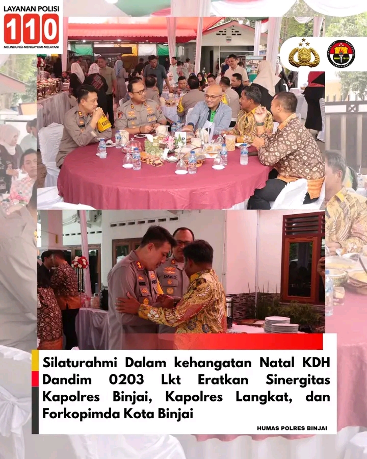 Kehangatan dan keceriaan Natal Tahun 2025 menjadi suasana yang sangat spesial bagi Kapolres Binjai, Kapolres Langkat, serta Forkopimda Kota Binjai yang menghadiri acara silaturahmi KDH Dandim 0203 Langkat pada Jumat (26/12/2025). Acara yang berlangsung mulai pukul 10.30 WIB ini menjadi wadah silaturahmi yang erat antara Kodim 0203 Lkt, Polres Binjai, Polres Langkat, dan Forum Koordinasi Pimpinan Daerah (Forkopimda) Kota Binjai serta berbagai elemen masyarakat.