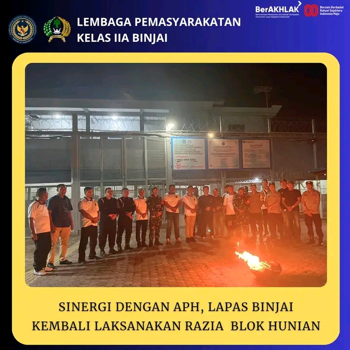 satunya memberantas peredaran narkoba dan pelaku penipuan dengan berbagai modus di Lapas dan Rutan, Lembaga Pemasyarakatan kelas IIA Binjai menggelar razia gabungan bersama dengan Personil dari Polres Binjai.