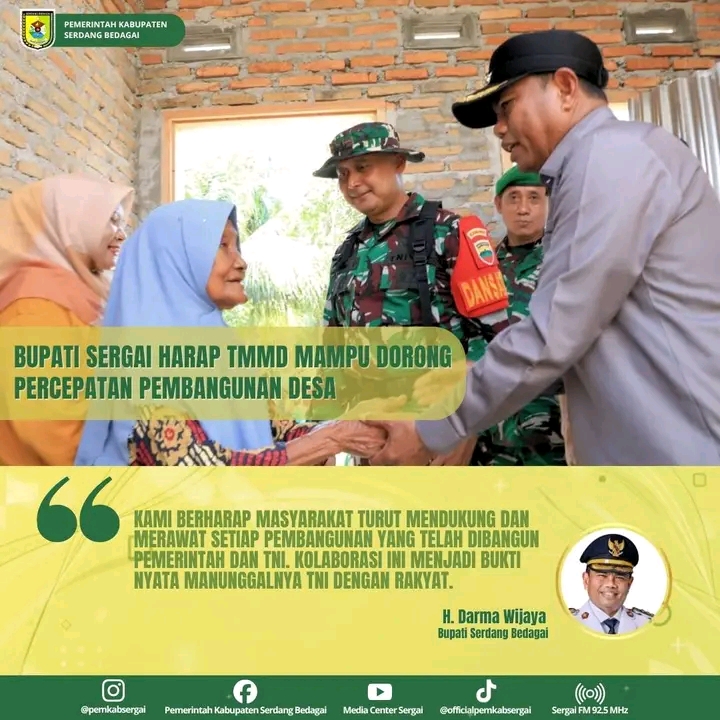 Bupati Serdang Bedagai (Sergai) H. Darma Wijaya menjadi inspektur upacara pembukaan TNI Manunggal Membangun Desa (TMMD) ke-126 Tahun Anggaran 2025 yang digelar di Lapangan Sepak Bola Desa Havea, Kecamatan Dolok Masihul, Rabu (8/10/2025).