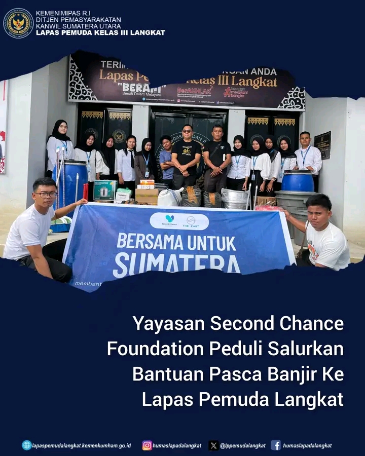 Yayasan Second Chance Foundation mengunjungi Lembaga Pemasyarakatan (Lapas) Pemuda Kelas III Langkat, kunjungan tersebut dalam rangka menyalurkan bantuan pasca banjir yang melanda wilayah Langkat, Selasa (16/12/2025).